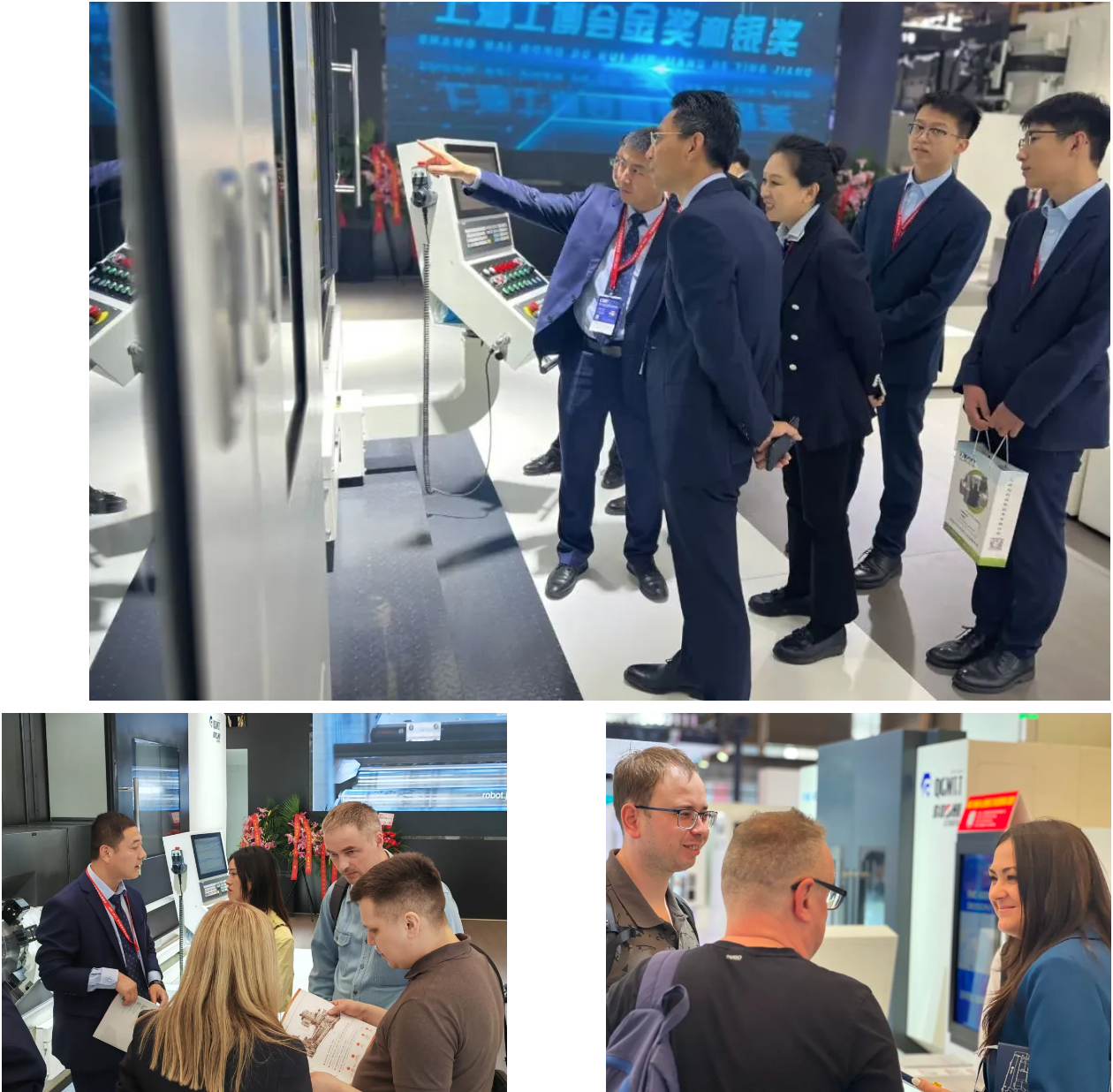 宝鸡市政协主席刘其智、副主席张德科、明涛等领导莅临公司展位。秦川集团李强总裁、摩根娱乐李清耀董事长重点介绍了现场展机以及公司在科技创新、产品研发、重点领域应用案例等方面情况。
